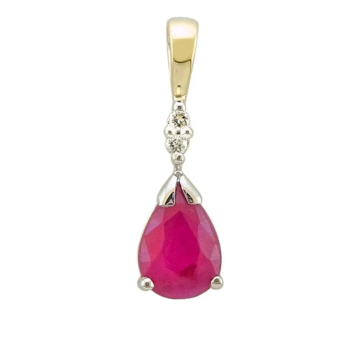9ct Gold Teardrop Ruby and Diamond Pendant