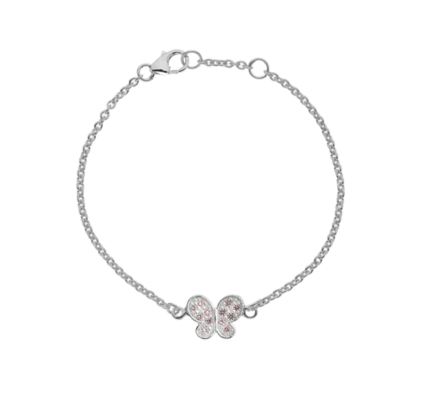 Silver Children’s Bracelet with Pink Cubic Zirconia Butterfly Charm